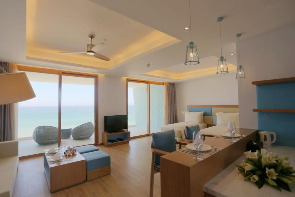 Nằm trên một bãi biển hoang sơ riêng, FLC Luxury Hotel Quy Nhon cung cấp chỗ nghỉ trang nhã, rộng rãi ở thành phố Quy Nhơn. Khách sạn có truy cập Wi-Fi miễn phí, hồ bơi ngoài trời, sân hiên phơi nắng, các địa điểm ăn uống, quán bar, sân chơi cho trẻ em và trung tâm spa trong khuôn viên. Có không khí bình dị trong một khung cảnh bãi biển tuyệt đẹp, tất cả các phòng tại đây đều có ban công hoặc sân hiên riêng với tầm nhìn toàn cảnh ra bãi biển Cát Tiên, làng chài Nhơn Lý và Eo Gió. Mỗi phòng máy lạnh được thiết kế khu vực tiếp khách với ghế sofa cùng TV màn hình phẳng để du khách có thể giải trí. Phòng tắm riêng đi kèm tiện nghi vòi sen và đồ vệ sinh cá nhân miễn phí. Áo choàng tắm và dép cũng có sẵn để đảm bảo sự tiện nghi cho du khách. Ngoài lễ tân làm việc 24 giờ, khách sạn còn có Nurture Spa, nơi du khách có thể tận hưởng cảm giác đổ mồ hôi thoải mái trong phòng xông hơi khô, ngâm mình trong bồn tắm nước nóng hoặc thư giãn với mát-xa chuyên nghiệp. Du khách có thể tham gia nhiều hoạt động giải trí trong khu vực xung quanh như chơi gôn, lặn với ống thở và chơi tennis. Ngoài ra, du khách còn có thể sử dụng tiện nghi chơi thể thao dưới nước và xe đạp cho thuê tại đây. Nhà hàng Terrace Bay phục vụ ăn uống cả ngày với đặc sản châu Á và phương Tây phong phú. Được trang trí theo phong cách xa hoa, Colada Lounge và Ocean Pool cung cấp nhiều lựa chọn đồ uống cũng như đồ ăn nhẹ. Du khách có thể nếm thử nhiều loại rượu vang, rượu mạnh và xì gà nhập khẩu tại Wine & Cigar Bar. FLC Luxury Hotel Quy Nhon cách Sân bay Phù Cát 34 km.