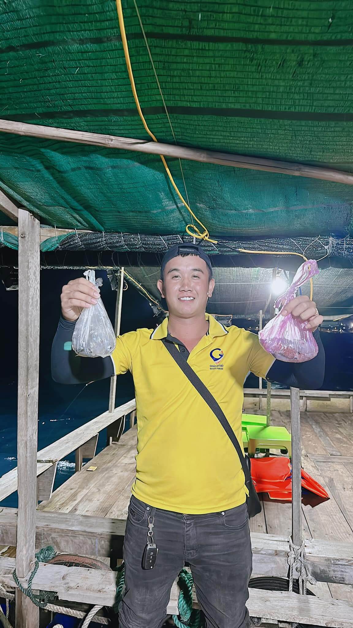 Quý khách sẽ được trang bị áo phao an toàn và lên cano để di chuyển ra Bè Câu mực. Trên mặt biển lặng lẽ, chỉ có tiếng sóng vỗ nhẹ vào thân cano và tiếng cười vui vẻ của mọi người.